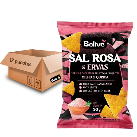 - > Kit c/ 12und Tortilla Chips Belive Sal Rosa e Ervas 50g